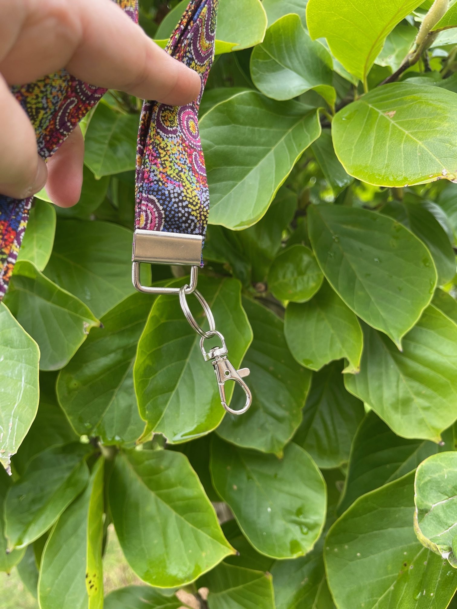 Our fabric lanyards are made on from high quality fabrics and close with a metal claw clip and keyring.
